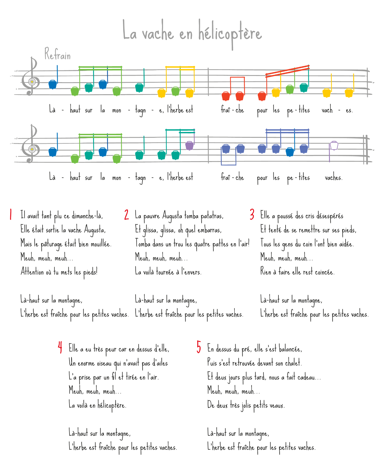 Refrain: C’est Caterina. Caterina, la vache mu-mu-chantante. Caterina, comme elle est mignonne !